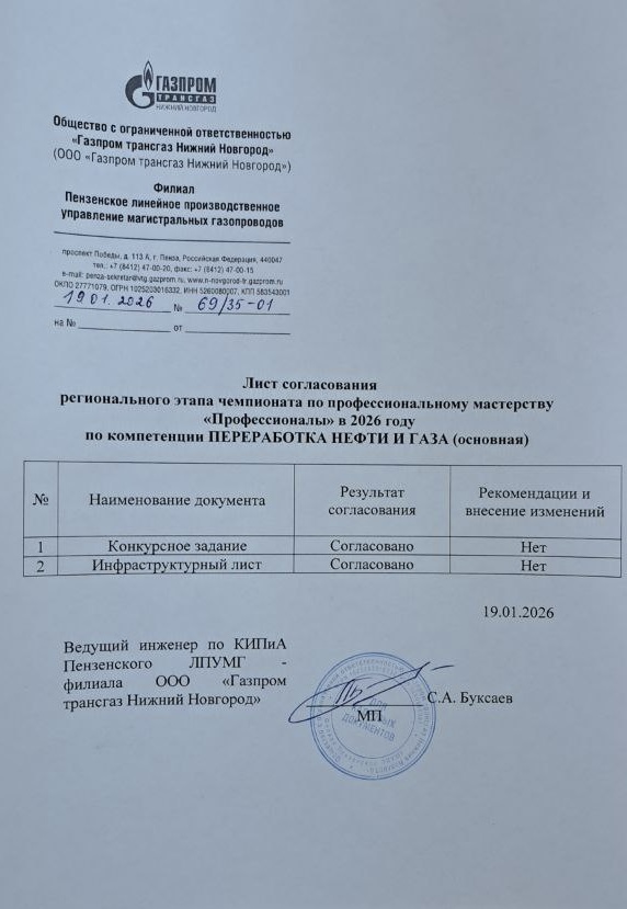Переработка нефти и газа Описание компетенции Инфраструктурный лист Конкурсное задание Критерии оценки План застройки Порядок проведения Матрица конкурсного задания Инструкция по охране труда Лист согласования Лист подтверждения трудоустройства